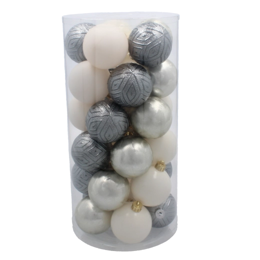 Vďaka 30 kusom ozdôb ľahko pokryjete celý stromček v jednotnej schéme. Rôzne povrchové úpravy – matné, lesklé a reliéfne – prinášajú hru svetiel a textúr, ktorá pozdvihne sviatočnú atmosféru na vyššiu úroveň.