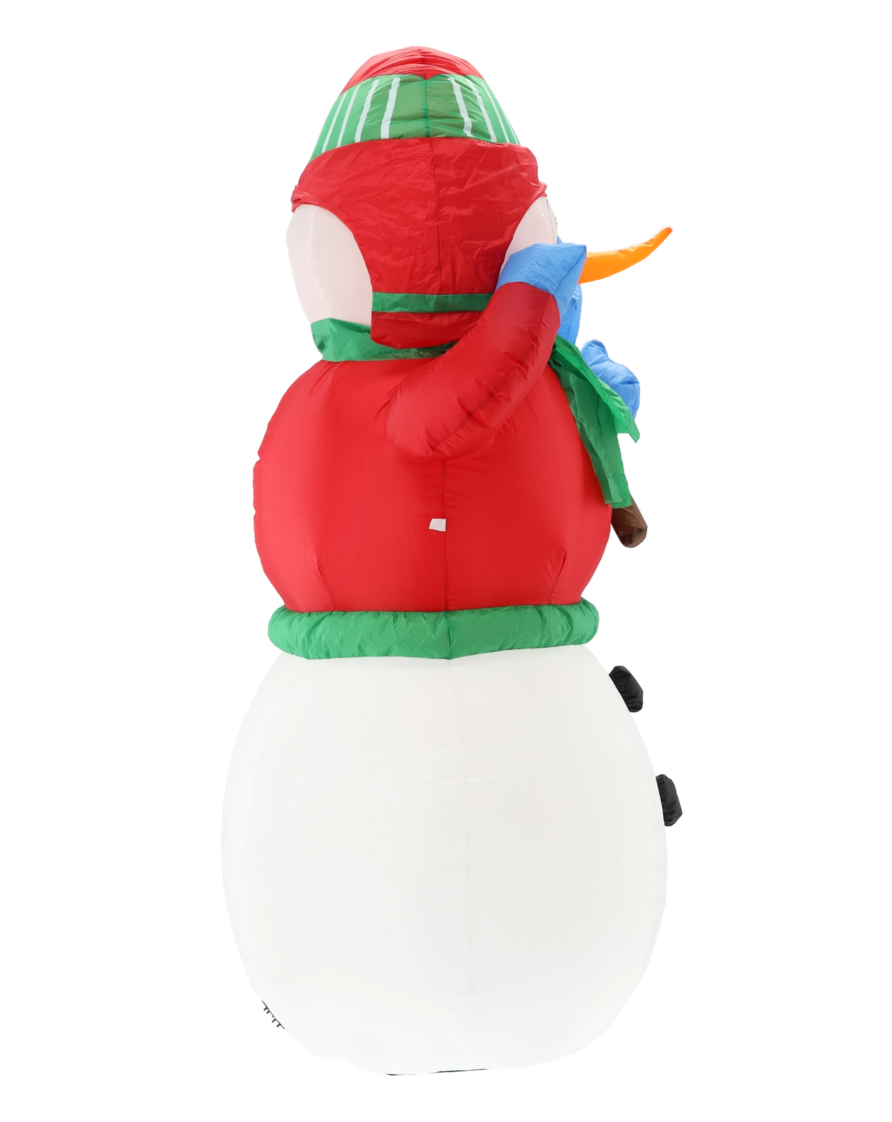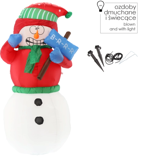 Tento veselý nafukovací snehuliak s červeným kabátikom, zelenou čiapkou a šálom rozžiari každý exteriér aj interiér. Integrované 2 biele LED diódy zaistia pôsobivé nasvietenie po zotmení, zatiaľ čo robustný materiál a krytie IP44 garantujú spoľahlivú prevádzku vonku počas zimnej sezóny.
