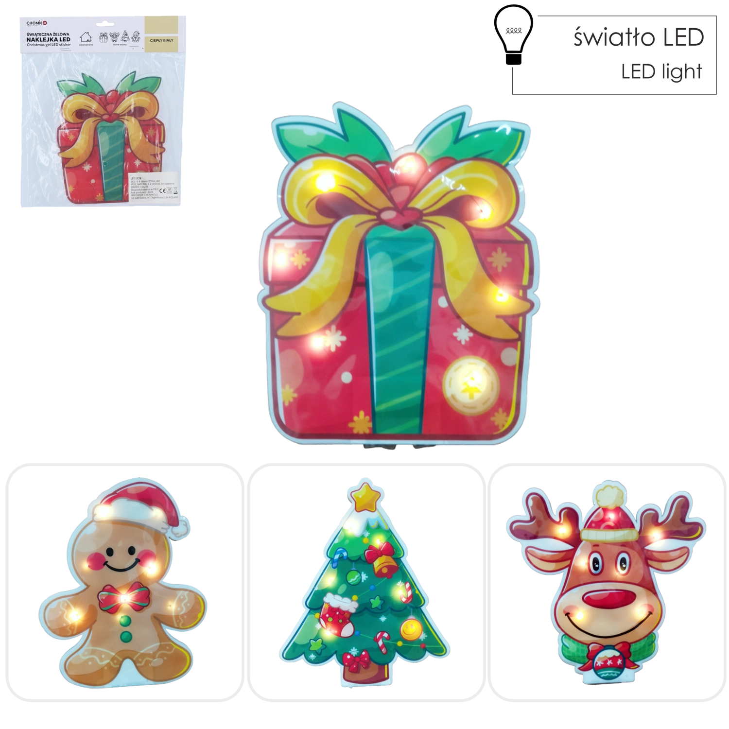 Rozžiarte svoj domov kúzlom Vianoc vďaka dekoratívnej gélovej samolepke s LED. Vyberte si motív stromčeka, darčeka, soba alebo perníčka a vykúzlite príjemnú atmosféru teplým bielym svetlom. Samolepka sa ľahko pripevní na sklo, zrkadlo či nábytok, funguje na batériu a nevyžaduje žiadne káble. Rýchla výzdoba na okná aj do detskej izby.