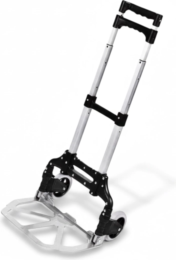 Ľahký a odolný skladací hliníkový vozík s teleskopickou rukoväťou uľahčí prevoz škatúľ, batožiny aj náradia. Vďaka kompaktným rozmerom sa zmestí do kufra auta, po zložení zaberie minimum miesta a nosnosť 70 kg spoľahlivo pokryje väčšinu domácich aj firemných úloh. Súčasťou balenia je elastický upínací popruh na bezpečné zaistenie nákladu.