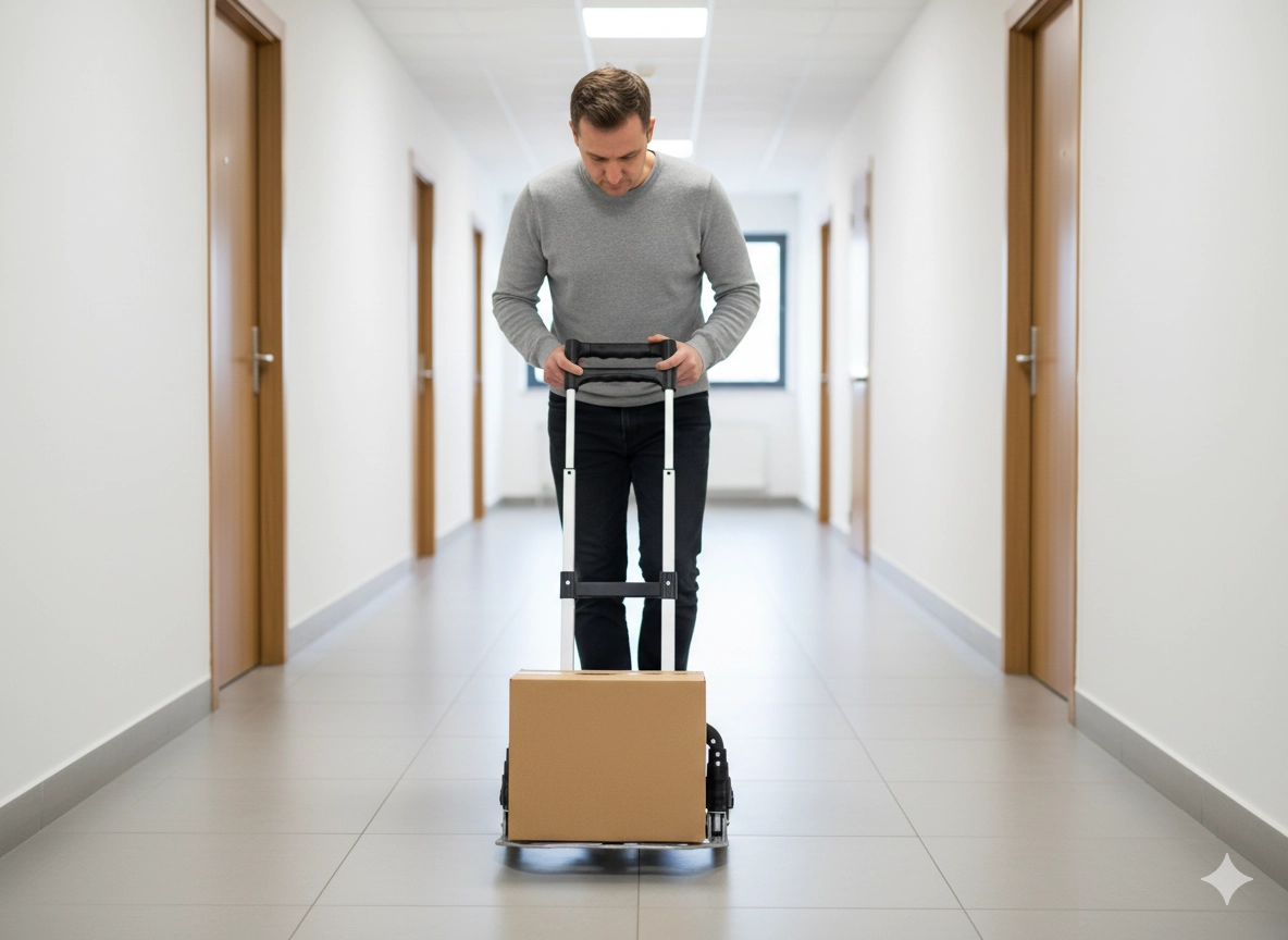 Nastaviteľná výška rukoväti a široká skladacia základňa zabezpečujú pohodlný a bezpečný prevoz škatúľ aj batožiny.