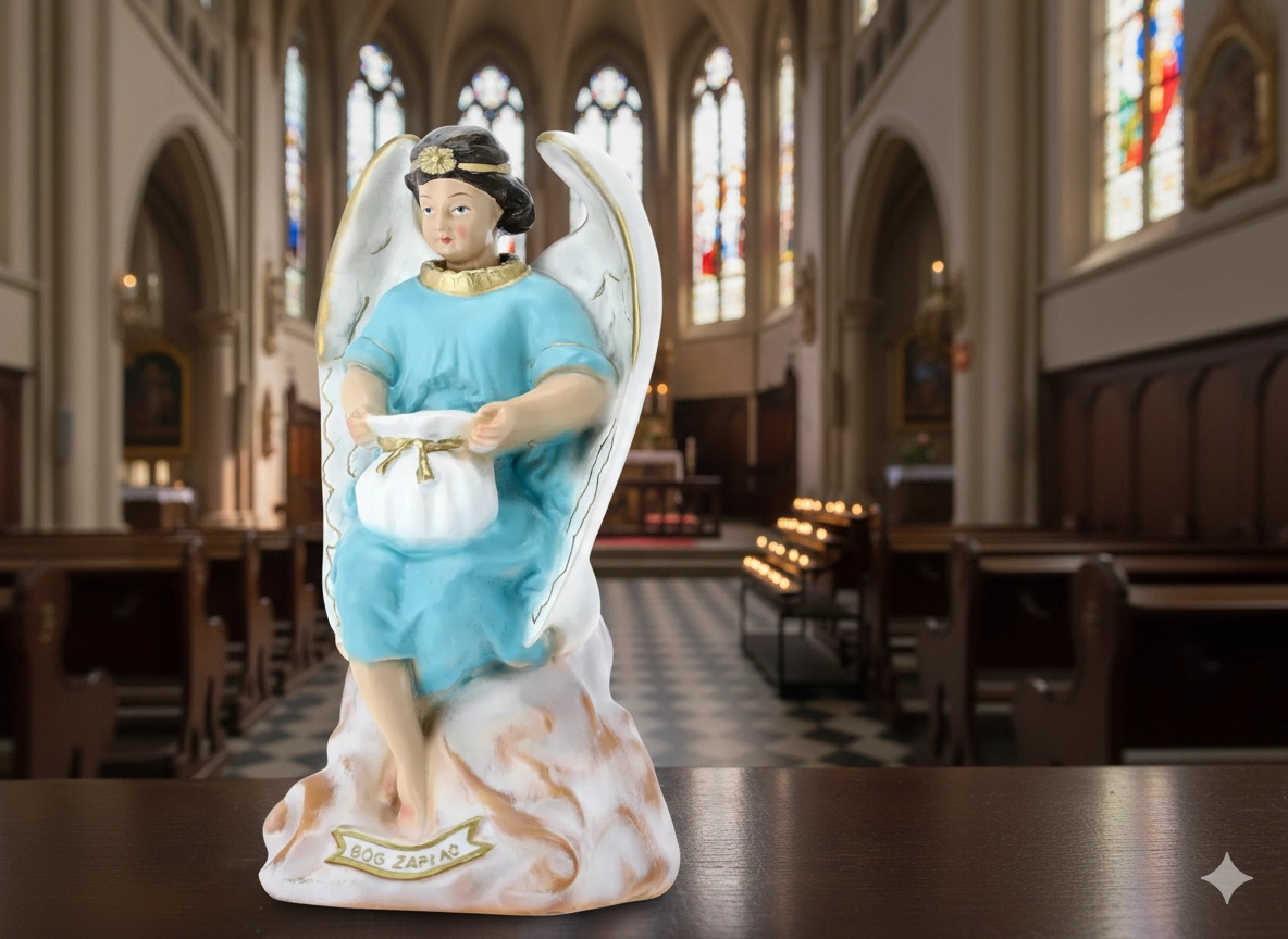 Anjelská pokladnička je skvelá ako darčekový predmet, vianočná dekorácia aj ako duchovný symbol ochrany do domácnosti. Prepracované krídla, jemné črty tváre a stabilný podstavec podčiarkujú reprezentatívny vzhľad.