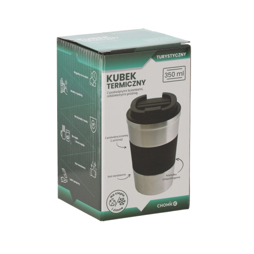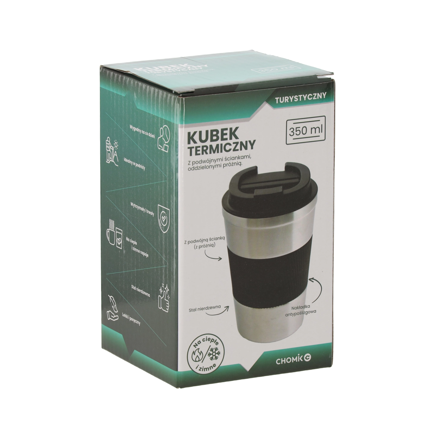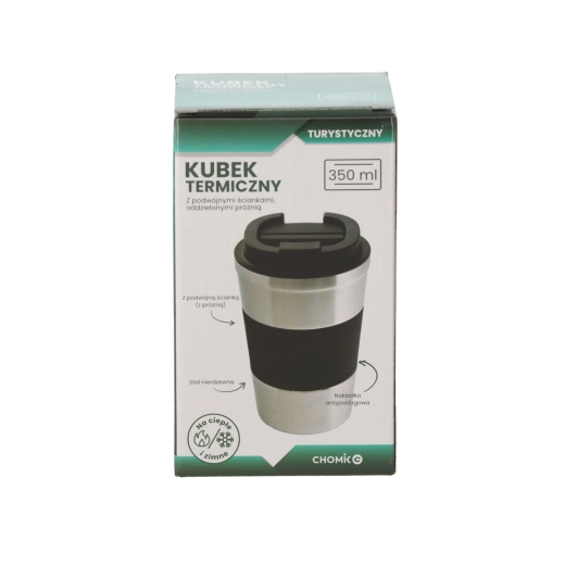 Praktický termohrnček s objemom 350 ml z kvalitnej nehrdzavejúcej ocele s vákuovou konštrukciou udrží nápoj teplý či studený až 4 hodiny. Má protišmykový silikónový návlek pre istý úchop, skrutkovacie viečko z odolného PP a je vhodný do umývačky riadu. Elegantný povrch v prirodzenej farbe nehrdzavejúcej ocele sa hodí do práce, auta aj na výlety.