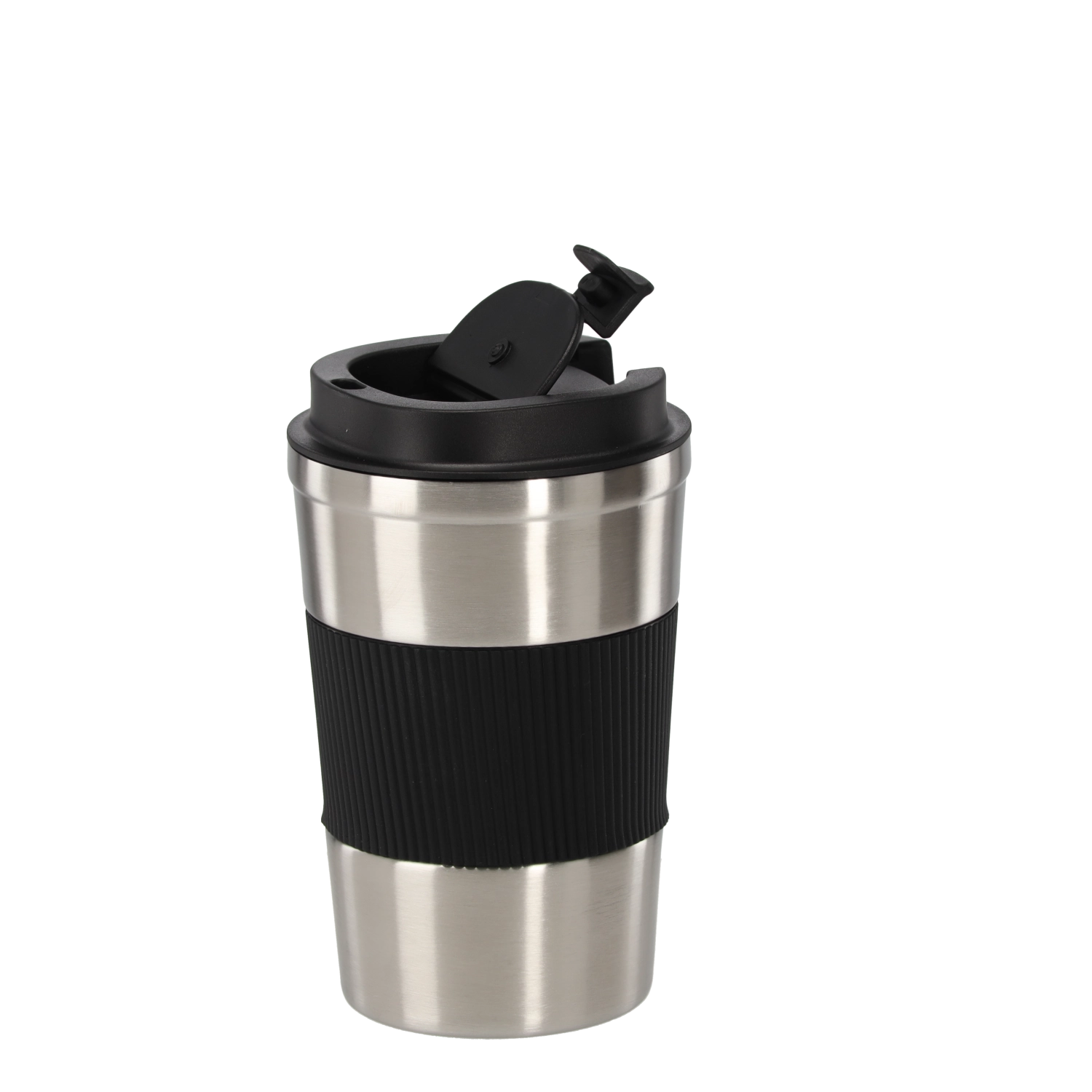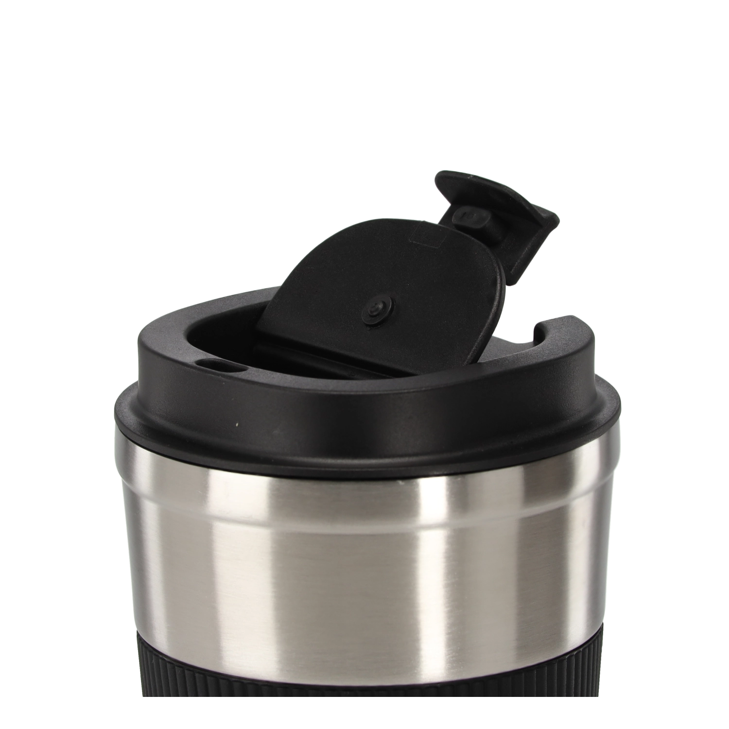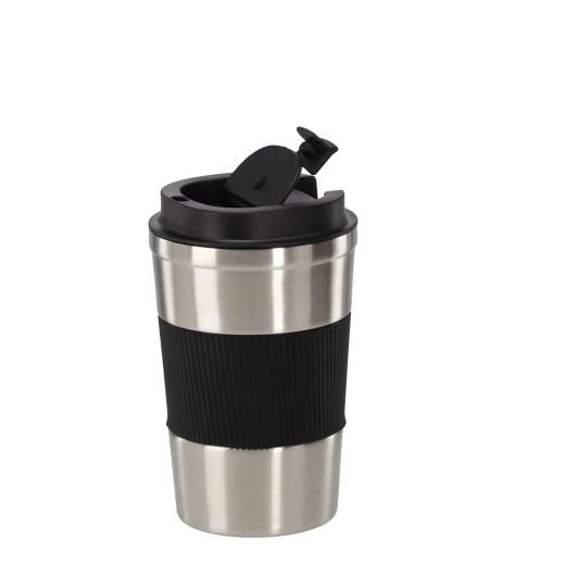 Stredový silikónový návlek zabezpečuje pevný a bezpečný úchop, zatiaľ čo skrutkovacie viečko obmedzuje nechcené rozliatie. Telo v prirodzenom odtieni nehrdzavejúcej ocele je odolné a ľahko sa udržiava – hrnček možno umývať v umývačke riadu.