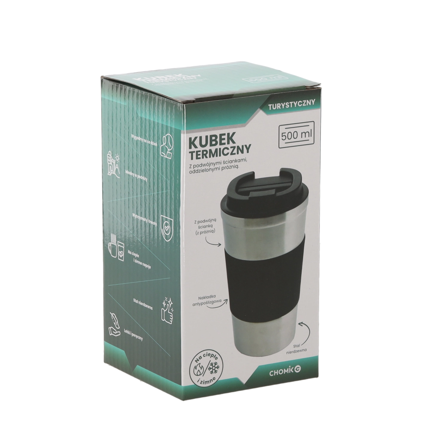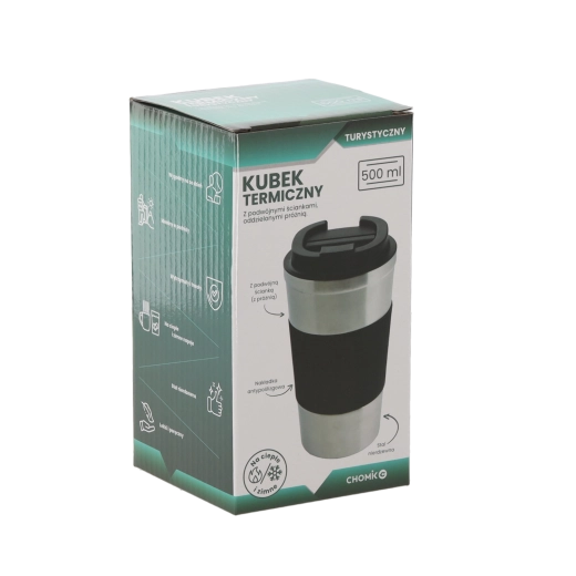 Praktický termopohár z nehrdzavejúcej ocele s objemom 500 ml udrží vaše nápoje pohodlne na cestách. Vďaka dvojitej stene s vákuovou konštrukciou a protišmykovému silikónovému úchopu sa príjemne drží a lepšie izoluje. Flipové viečko z PP minimalizuje rozliatie, pohár je vhodný do umývačky a udrží teplotu až 4 hodiny.