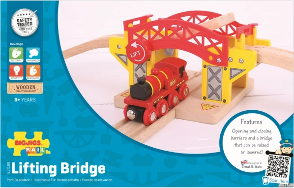 Drevený zdvíhací most je dokonalým doplnkom každej vláčikodráhy. Tento most je kompatibilný so všetkými drevenými vláčikodráhami na trhu a je vyrobený z kvalitných a zodpovedne získaných prírodných materiálov. Konštrukcia, ktorá podporuje kreativitu, obratnosť a koordináciu, ponúka realistické funkcie ako je zdvíhanie mostu.