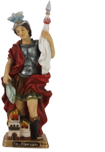 Táto detailne spracovaná soška sv. Floriána spája duchovnú symboliku s kvalitným prevedením. Realistické rysy, výrazný plášť a maľované detaily zdôrazňujú jeho ochrannú úlohu proti ohňu, takže sa skvele hodí do interiéru aj exteriéru.