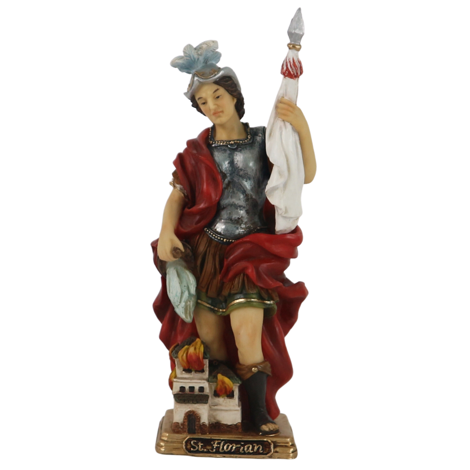 Elegantná figúrka svätého Floriána – patróna hasičov a ochrancu pred požiarmi – prináša do domova symbol viery a ochrany. Vysoká 22,5 cm, starostlivo spracovaná a ručne maľovaná, ideálna pre domáci oltár, kaplnku aj ako výnimočný darček.