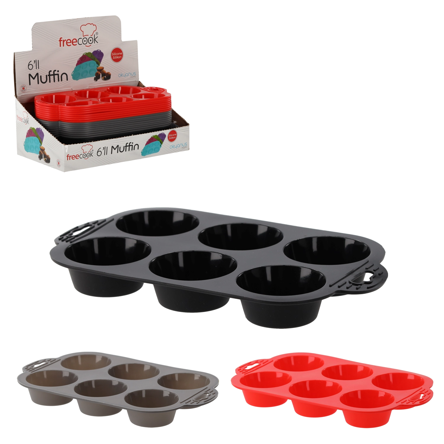 - Silikónová forma na muffiny so 6 dutinami a bočnými úchytmi