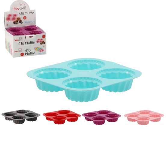 Praktická silikónová forma na muffiny na pečenie 4 kusov naraz zabezpečí ľahké vyberanie bez priľnavosti, rýchle čistenie a všestranné použitie od rúry po mrazničku. Vďaka teplotnej odolnosti -40 °C až +240 °C a flexibilnému prevedeniu je ideálna na muffiny, bábovičky aj mini tortičky.