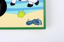 Hracia doska s farebnými ilustráciami zvierat a farebné vrecúška robia hru atraktívnou a zábavnou pre deti.