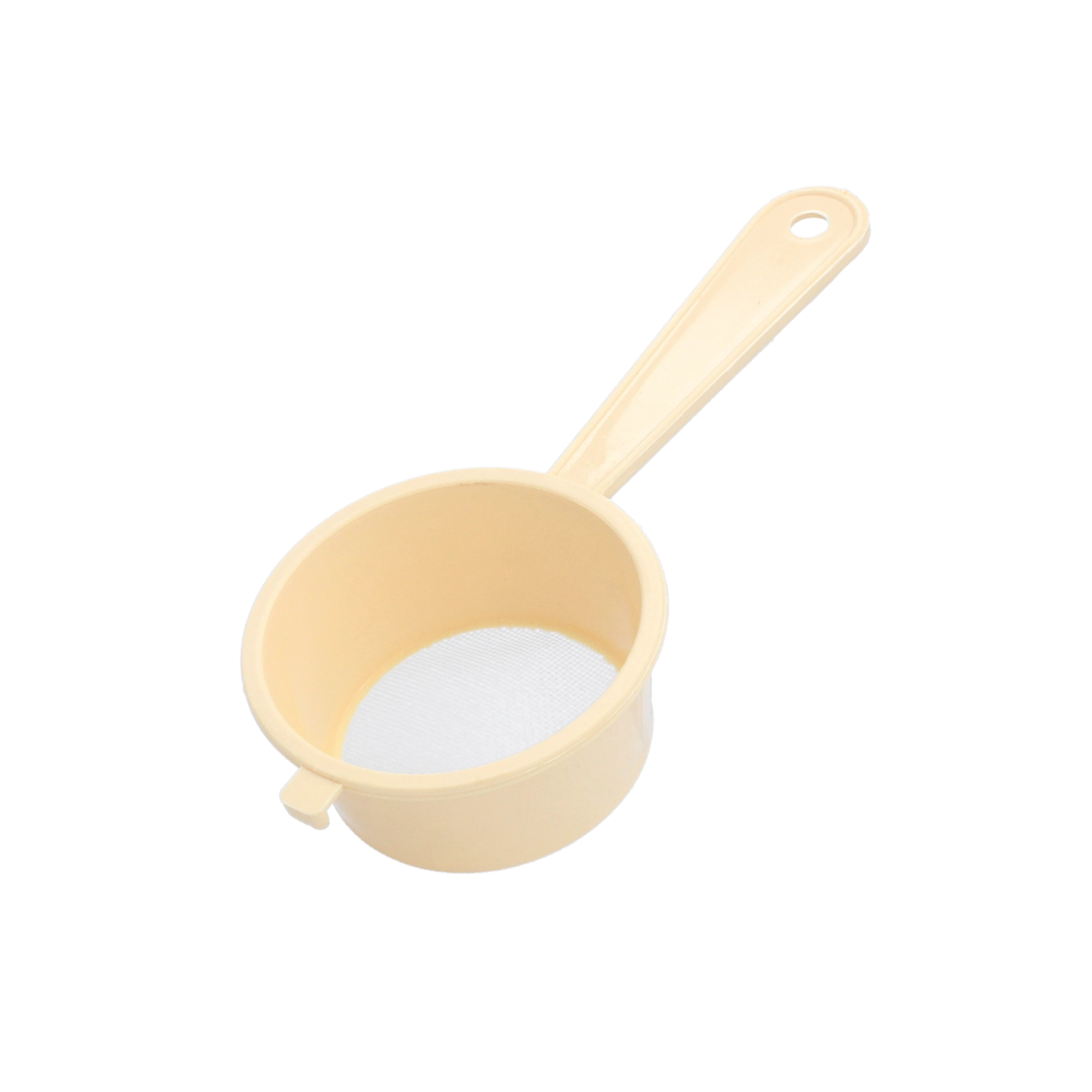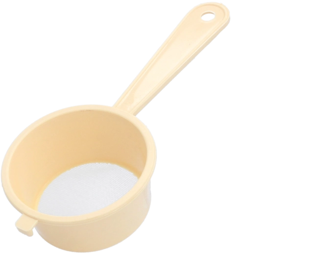 Praktické kuchynské sitko s priemerom 7,5 cm s jemnými okami 0,6 mm na preosievanie múky a cukru, cezenie tekutín aj odkvapkávanie drobných potravín. Ľahký a odolný plast je bezpečný na styk s potravinami, ergonomická rukoväť a otvor na zavesenie zabezpečujú pohodlné používanie a úsporu miesta.