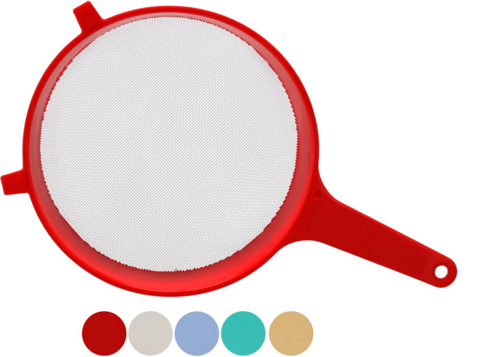 Ľahká a pritom odolná plastová konštrukcia uľahčuje manipuláciu. Dlhá rukoväť s otvorom na zavesenie a dva bočné háčiky zabezpečujú stabilné usadenie na hrncoch či vedrách rôznych veľkostí. Vďaka tomu je sitko veľmi univerzálne a praktické na každodenné používanie aj domácu fermentáciu.