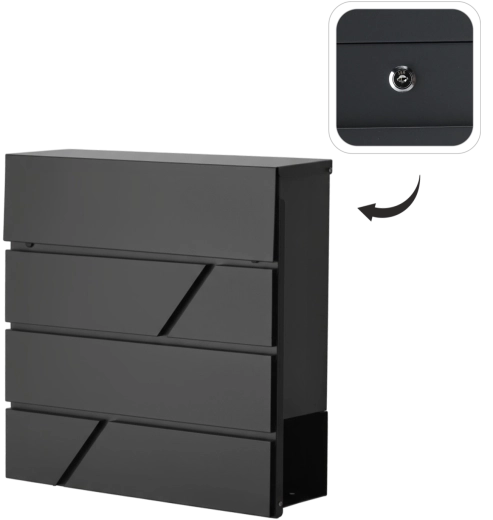 Vďaka kompaktným rozmerom 37 × 37 × 10,5 cm a modernému vzhľadu sa schránka ľahko začlení na fasádu domu, bytového domu či kancelárie. Jednoduché vkladanie pošty a pohodlný prístup z prednej strany uľahčia každodenné používanie.