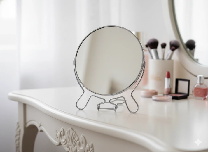 Elegantné kozmetické zrkadlo na líčenie s kompaktnými rozmermi je ideálne do kabelky aj na cesty. Ponúka čisté a verné odrazy bez skreslenia, ľahkú konštrukciu a štýlový dizajn, takže sa hodí na každodennú starostlivosť o pleť aj ako skvelý darček.