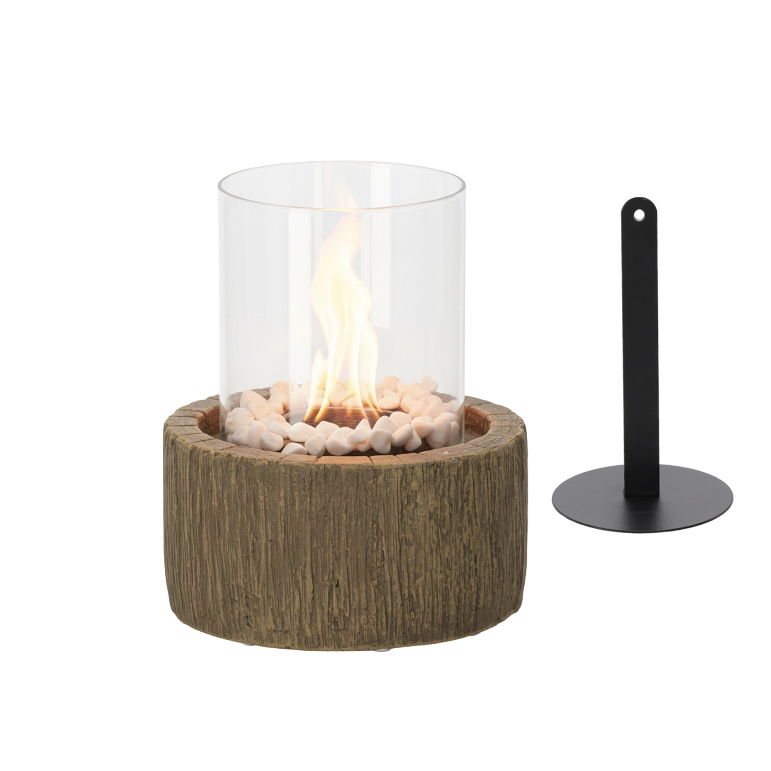 Stolový biokrb je elegantná dekorácia aj zdroj príjemného svetla na relax pri káve, knihe či večernom posedení. Sklenený valec chráni plameň pred vetrom a biele kamienky zvýrazňujú prírodný vzhľad imitácie dreva. Biokrb je ideálny do obývačky, na balkón aj terasu.
