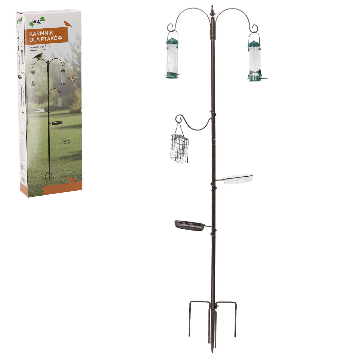 Elegantné záhradné kŕmidlo pre vtáky s výškou 190 cm je ideálne na celoročnú starostlivosť o voľne žijúce vtáctvo. Vďaka svojej výške ponúka vtákom bezpečné miesto na kŕmenie a vám umožní ľahké pozorovanie. Stabilná konštrukcia z nehrdzavejúcej ocele zaručuje odolnosť voči poveternostným vplyvom, dlhú životnosť a pevná stabilitu vďaka kotvám v balení. Multifunkčné riešenie umožňuje podávanie rôznych druhov potravy a vody a poteší jednoduchou montážou aj demontážou.