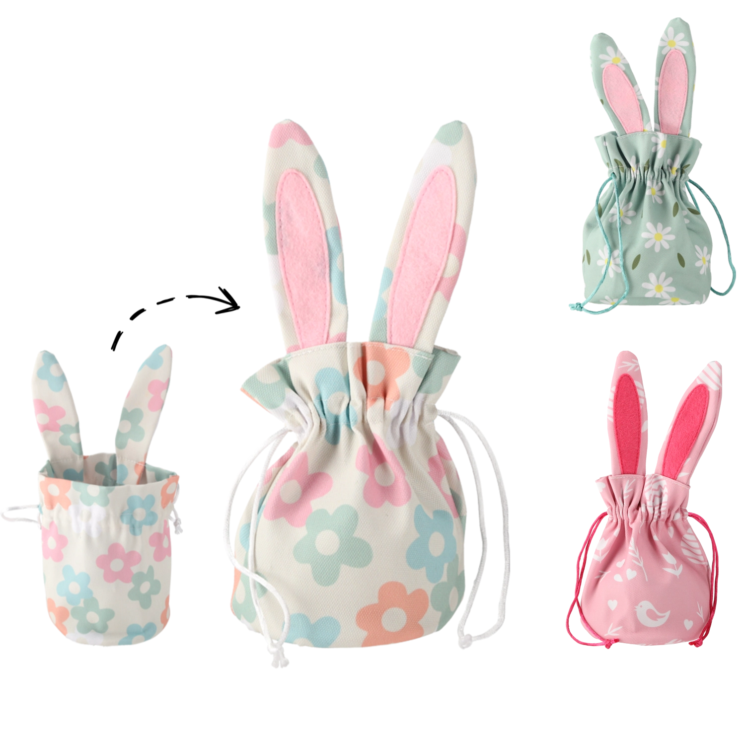 Roztomilý veľkonočný košík so zajačími uškami s rozmermi 15,5 × 26 cm je ideálny na výzdobu aj praktické uloženie drobností. Ponúka tri štýlové vzory, pevné prevedenie a dostatok priestoru na vajíčka, sladkosti či malé darčeky. Vďaka kvalitným materiálom a univerzálnemu dizajnu sa hodí nielen na Veľkú noc, ale aj ako dekorácia počas celého roka.