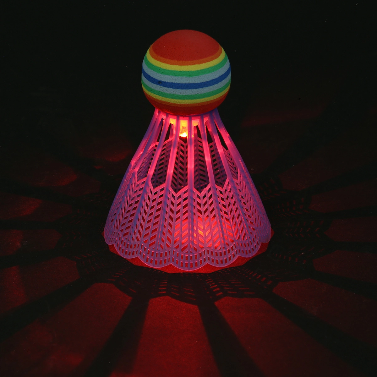 Užite si bedminton kedykoľvek – aj po zotmení. Táto sada kombinuje odolnú nylonovú košíkovú loptičku s rozšírenou EVA základňou pre ľahšiu hru a integrovanou LED diódou pre skvelú viditeľnosť. Súčasťou je aj penová (molitanová) loptička (Ø 45 mm), ktorá je ľahšia a „pomalšia“, ideálna pre začiatočníkov a deti.
