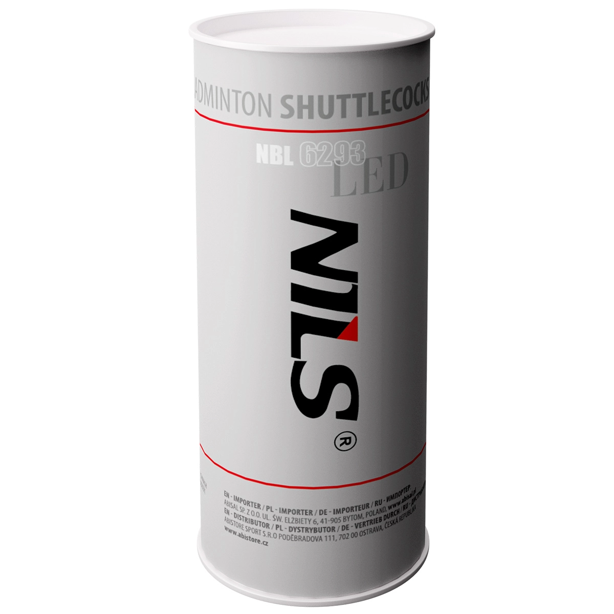 Bedmintónové košíky NILS so svietiacou LED diódou prinášajú zábavu aj po zotmení. Vďaka odolnému nylonovému košíčku a vyváženej základni z umelého korku poskytujú spoľahlivý, predvídateľný let a dlhšiu trvácnosť oproti perovým košíkom. LED modul napájaný gombíkovou batériou zabezpečuje výbornú viditeľnosť košíka.