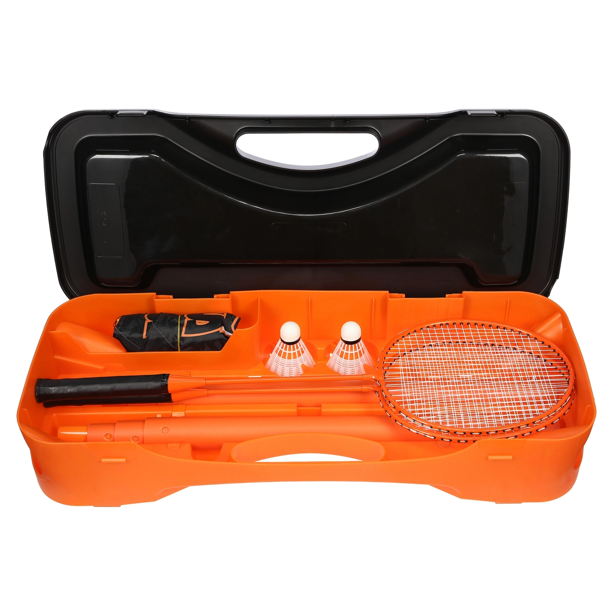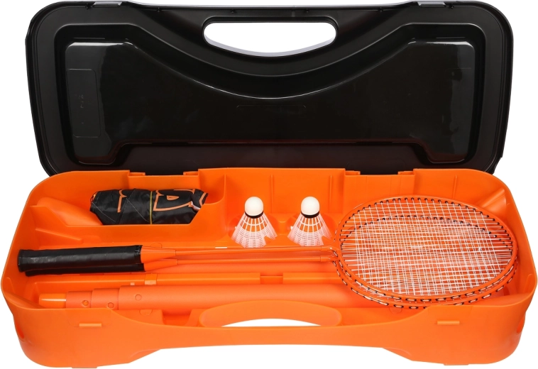 Set obsahuje všetko potrebné na okamžité hranie: dve rakety, dva košíky, skladaciu sieť a pevný transportný kufrík s organizovanými priehradkami. Kompaktné balenie (68 × 28,5 × 12 cm) sa ľahko zmestí do auta aj domáceho úložiska, takže si môžete užiť bedminton na záhrade, v parku aj na dovolenke.