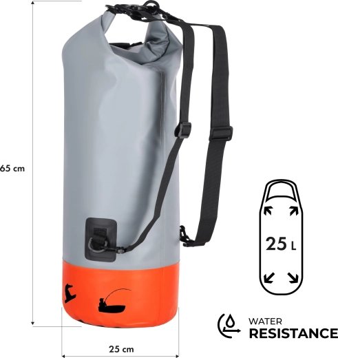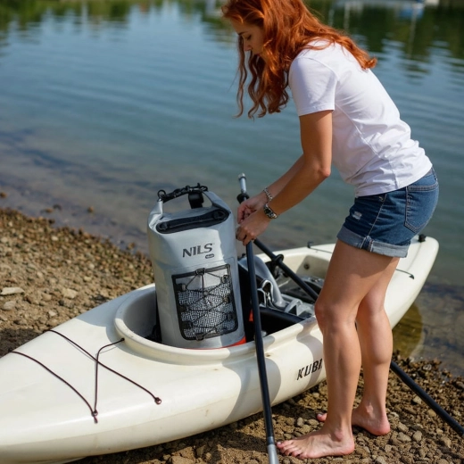 Odolný nepremokavý vak NILS Camp s objemom 25 l spoľahlivo ochráni vaše veci pred vodou, blatom aj dažďom. Vďaka roll-top uzatváraniu s prackou, vodotesnému materiálu PVC 500D a sieťovanému vrecku pre rýchly prístup je ideálny na kajak, paddleboarding, turistiku aj kempovanie. Nastaviteľné odnímateľné popruhy umožnia pohodlné nosenie ako batohu.