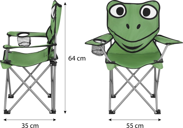 Ľahká a odolná detská skladacia stolička s motívom žaby od Nils Camp je ideálna k vode, na ryby, festivaly aj stanovanie. Ponúka stabilnú oceľovú konštrukciu, pevný poťah z polyesteru 600D, nosnosť 50 kg a praktický držiak nápojov. Ľahko sa zloží a vďaka prepravnému obalu s popruhom si ju dieťa vezme kamkoľvek so sebou.