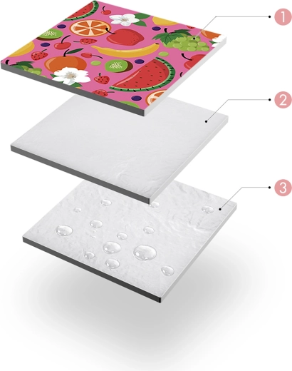 Vrchný fleece pre mäkké sedenie, 2 mm pena pre komfort a spodná PE vrstva s hliníkom na ochranu pred chladom a vlhkom – ideálne aj na chladnejšie alebo mokré podklady.