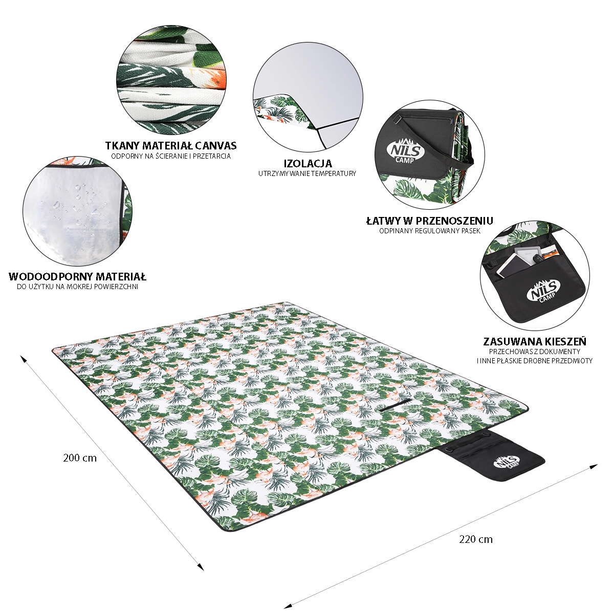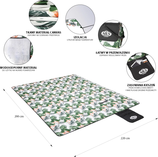 - Veľký formát – 200 × 220 cm na rodinné pikniky a relax.