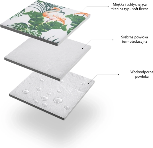 Hliníková fólia s vodoodolnou úpravou chráni pred vlhkosťou a chladom, takže si piknik užijete aj na mokrej tráve.