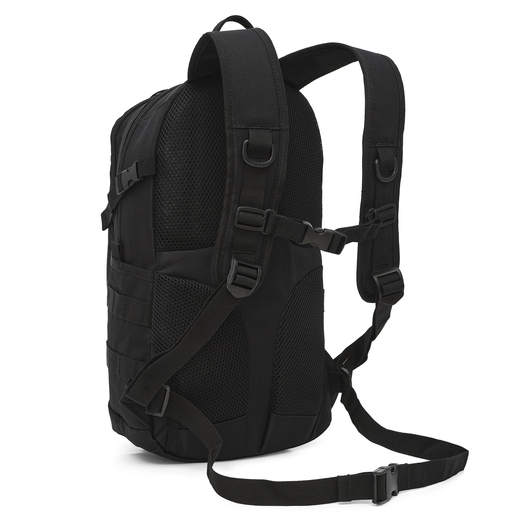 Na presné usadenie na chrbte slúži nastaviteľný hrudný a bedrový pás, ktoré zvyšujú stabilitu pri chôdzi, jazde na bicykli aj pri pohybe v teréne. Predný panel so suchým zipsom umožňuje personalizáciu pomocou nášiviek – od vlajok po identifikačné štítky (nášivky nie sú súčasťou balenia). Funkčné detaily ako pevné PP popruhy a odolné POM pracky pridávajú spoľahlivosť pri každodennom používaní.