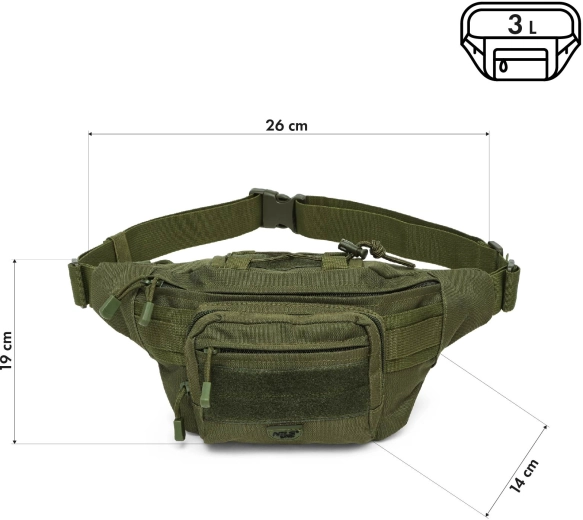 Elegantná a funkčná ľadvinka v taktickom štýle kombinuje kompaktné rozmery s premyslenou organizáciou. Zmestí sa do nej telefón, peňaženka, doklady, kľúče, powerbanka aj multitool. Nastaviteľný popruh umožní nosenie okolo pása aj ako crossbody cez rameno.