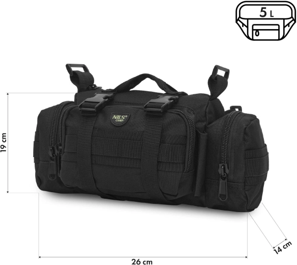 NILS Camp NC3907 je XL ľadvinka s taktickým charakterom, ktorá spája kompaktné rozmery s prekvapivo veľkým úložným priestorom. Ponúka objem 5 litrov a pojme telefón, peňaženku, kľúče, doklady, multitool, powerbanku aj ďalšie drobnosti. Vďaka rozmerom 26 × 19 × 14 cm neprekáža v pohybe a ľahko ju prispôsobíte svojmu štýlu nosenia – ako ľadvinku alebo crossbody cez rameno.
