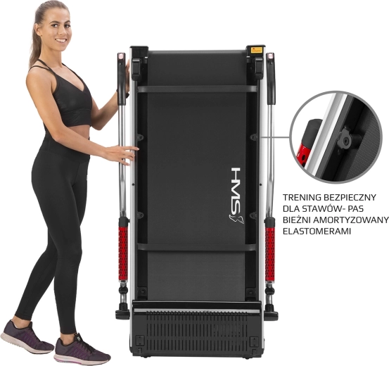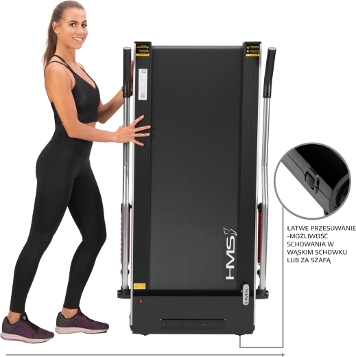 Vďaka maximálnej rýchlosti 6 km/h a plynulej regulácii pomocou tlačidiel na koncoch madiel ľahko prispôsobíte tempo svojim potrebám. Podlhovastý displej ponúka všetky kľúčové údaje na kontrolu tréningu. Úzke telo a sklopné madlá s rozmerom po zložení len 147 × 77 × 14 cm umožnia uloženie pod posteľ alebo za skriňu, transport uľahčujú praktické kolieska.