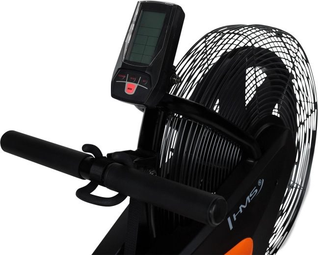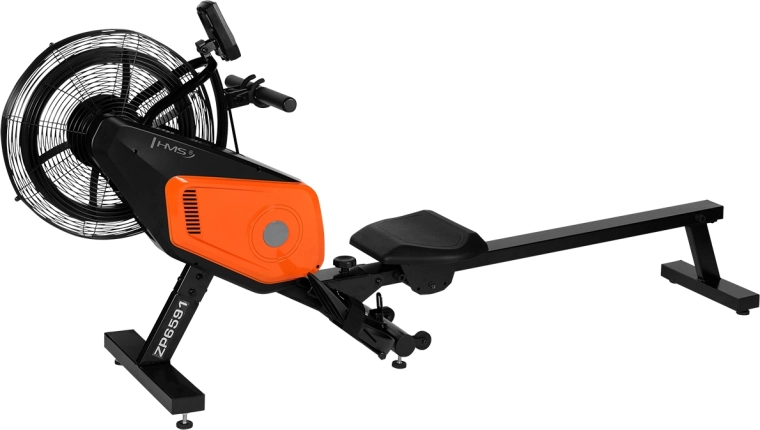Veslovací trenažér HMS so vzduchovým odporom využíva veľký „ventilátor“, ktorého odpor prirodzene rastie s rýchlosťou ťahu. Tým poskytuje plynulú a progresívnu záťaž, ktorá verne simuluje veslovanie na vode a podporuje efektívny rozvoj kondície aj sily. Pohodlné sedlo s hladkým pojazdom, nastaviteľné opierky nôh s páskami na suchý zips a stabilný rám umožňujú bezpečné a komfortné cvičenie.
