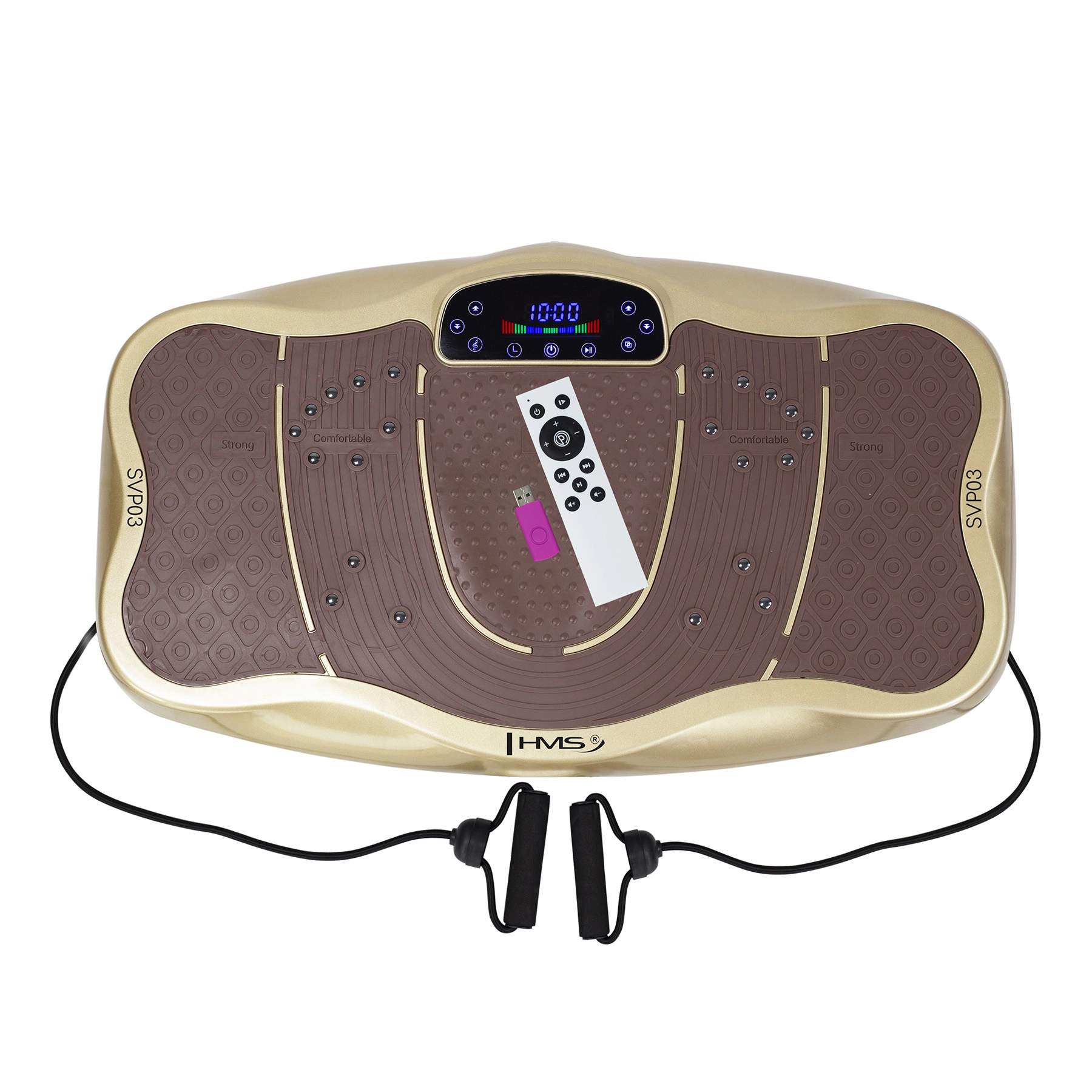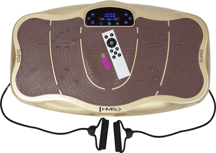 Domáca vibračná plošina HMS SVP03 v elegantnej zlatej farbe ponúka komplexný tréning celého tela bez nutnosti návštevy posilňovne. Vďaka 99 rýchlostiam, 4 programom a manuálnemu režimu si ľahko prispôsobíte intenzitu. Nechýba magnetoterapia na podporu prekrvenia, USB vstup s reproduktormi na hudbu a diaľkové ovládanie pre maximálne pohodlie.