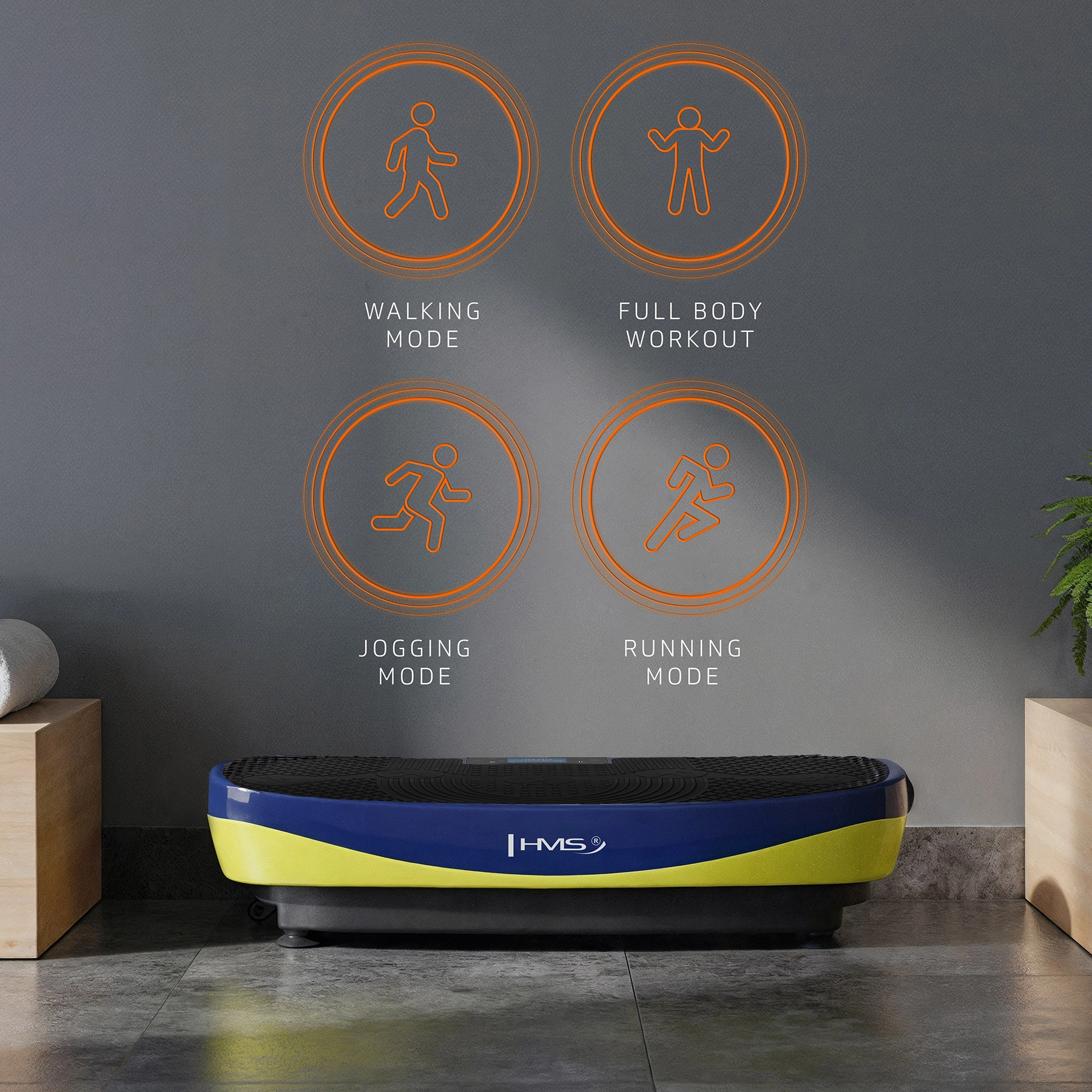 HMS SVP11 je prémiová vibračná plošina na komplexný domáci tréning. Dvojica motorov s výkonom 2 × 200 W vytvára hlboké a rovnomerné vibrácie s amplitúdou až 10 mm pre lepšie zapojenie svalov a rýchlejšie výsledky. Vďaka 5 programom, manuálnemu režimu a až 99 úrovniam intenzity si ľahko prispôsobíte cvičenie svojim cieľom – od spaľovania tukov cez posilňovanie až po masáž a regeneráciu.