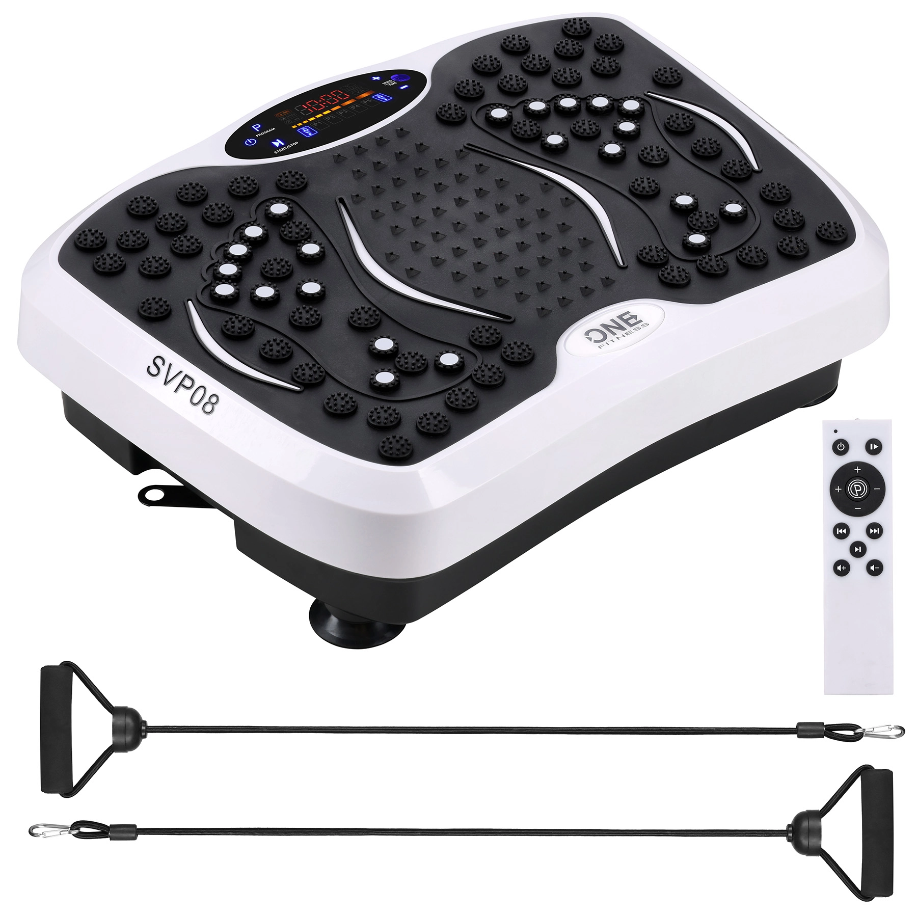 Kompaktná vibračná plošina ONE Fitness prináša viacsmerné vibrácie, až 120 úrovní intenzity a 5 tréningových programov pre efektívne cvičenie celého tela doma. Vďaka odporovým gumám, Bluetooth prehrávaniu hudby a diaľkovému ovládaniu posilníte svaly, zlepšíte kondíciu aj koordináciu s maximálnym pohodlím a bezpečnosťou až do 150 kg nosnosti.