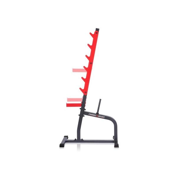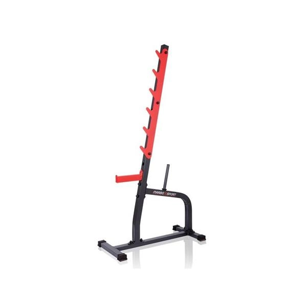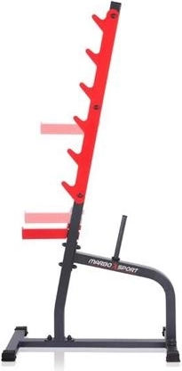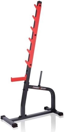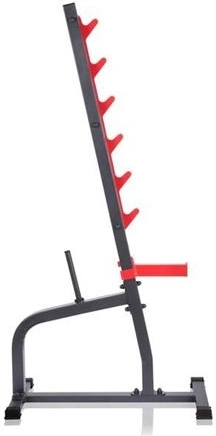 Robustná oceľová konštrukcia s práškovým lakom zabezpečuje dlhú životnosť a vysokú stabilitu aj pri ťažkých tréningoch. Stojany je možné používať samostatne na drepy a tlaky alebo ich kombinovať s posilňovacou lavicou. Integrované tŕne na kotúče (Ø 25 mm, dĺžka 22 cm) umožnia mať závažia vždy poruke a udržať tréningové miesto prehľadné.