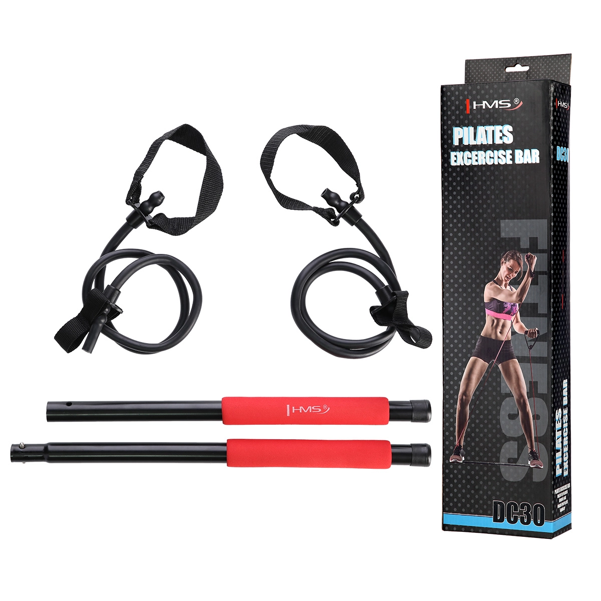 HMS DC30 je praktická pilates tyč spojená s gumovými expandérmi, ktorá umožňuje široké spektrum cvikov – od tlakov a prítahov po drepy, výpady či bočné zdvihy. Vďaka odnímateľným úchytom možno tyč použiť so slučkami na chodidlá alebo s úchopmi do rúk, takže ľahko zapojíte celé telo a efektívne budujete silu, stabilitu aj flexibilitu.