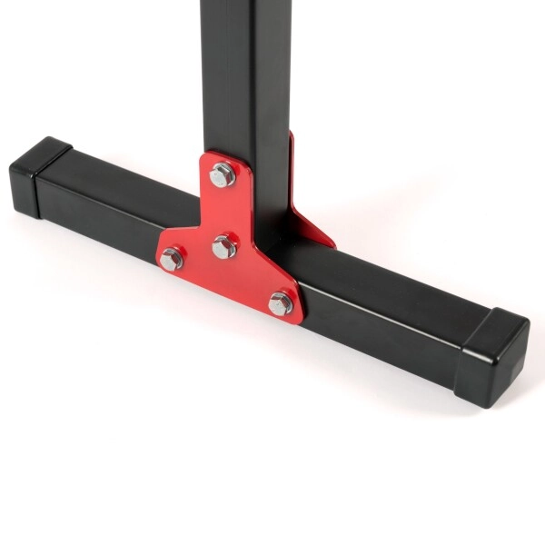 Oceľové profily 40×40 mm a široké nohy zabezpečujú stabilitu pri dynamických aj statických cvikoch s vlastnou váhou.