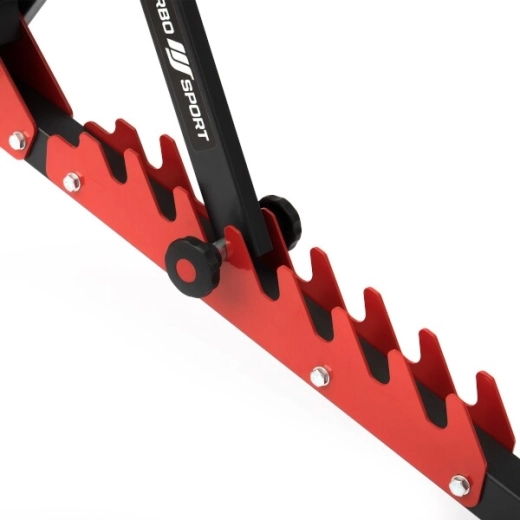 Praktické detaily ako gumové stabilizátory na ochranu podlahy a rýchle nastavenie uhlov robia z tejto lavice spoľahlivý základ domácej posilňovne.