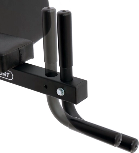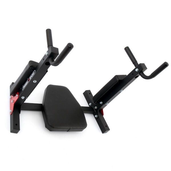 Rám z profilu 40 × 40 mm ponúka špičkovú tuhosť a bezpečie aj pri náročnom silovom tréningu dipov a zdvíhaní nôh.
