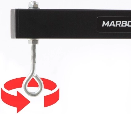 Držiak na vak MARBO Sport je skonštruovaný z odolnej ocele a navrhnutý na intenzívne domáce aj klubové použitie. Vďaka precíznemu spracovaniu na CNC strojoch sa môžete spoľahnúť na presnú montáž, vysokú stabilitu a dlhú životnosť. Oceľové oko na zavesenie vaku je istené kontramaticami proti samovoľnému povoľovaniu a pretáčaniu.