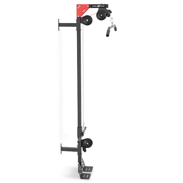 MARBO Sport MH-W101 2.0 je priestorovo úsporná nástenná kladka, ktorá premení vašu domácu posilňovňu na všestrannú stanicu pre ťahové cviky. Tri kladky s guľôčkovými ložiskami a dve oceľové laná s gumovými dorazmi zaručujú plynulý, tichý a bezpečný chod. Vďaka pojazdu s dvoma tŕňmi (Ø 25 mm) ľahko naložíte až 140 kg a môžete cvičiť ako s bežnými, tak s olympijskými kotúčmi.