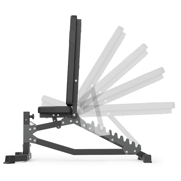 Lavica MARBO Sport MS-L102 2.0 je navrhnutá pre maximálnu presnosť, pohodlie a bezpečnosť. Laserom vypaľované zarážky umožňujú jemnú reguláciu operadla v 10 uhloch od takmer zvislej polohy až po šikmú lavicu -21°. Sedadlo nastavíte do 3 polôh pomocou pevného istenia čapom. Silná konštrukcia z oceľových profilov 50 × 50 × 2 mm zaručuje výnimočnú stabilitu a nosnosť až 300 kg.