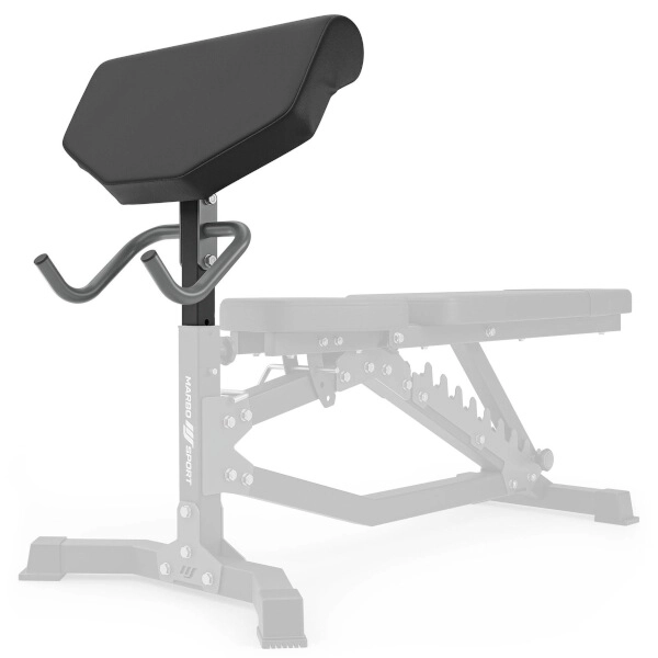 MARBO MS-A101 2.0 rozšíri vašu posilňovaciu lavicu o modlitebník na presné a bezpečné izolované cviky na biceps a triceps. Robustná konštrukcia z oceľového profilu, silná doska a hustá pena s odolným poťahom zaručujú komfort aj pri náročných tréningoch.
