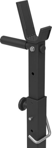 Šírku stojanov nastavíte v 5 krokoch (117–160 cm) a výšku v 7 úrovniach (92–152 cm); rovnako tak výšku zarážok (58–88 cm). Ergonomické skrutky a istiace kolíky urýchlia nastavenie, integrované trny na kotúče zvýšia stabilitu a poslúžia ako praktické úložisko. Madlá sú konštruované aj na tréning dipov.