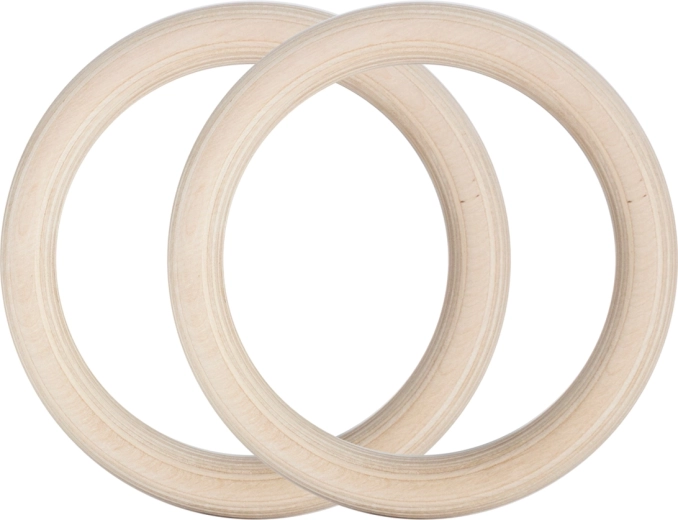 Kruhy z vybraného dreva sú hladké, odolné a príjemné do ruky. Priemer 23 cm a hrúbka 28 mm podporujú stabilitu a techniku pri zhyboch, dipech aj príťahoch.