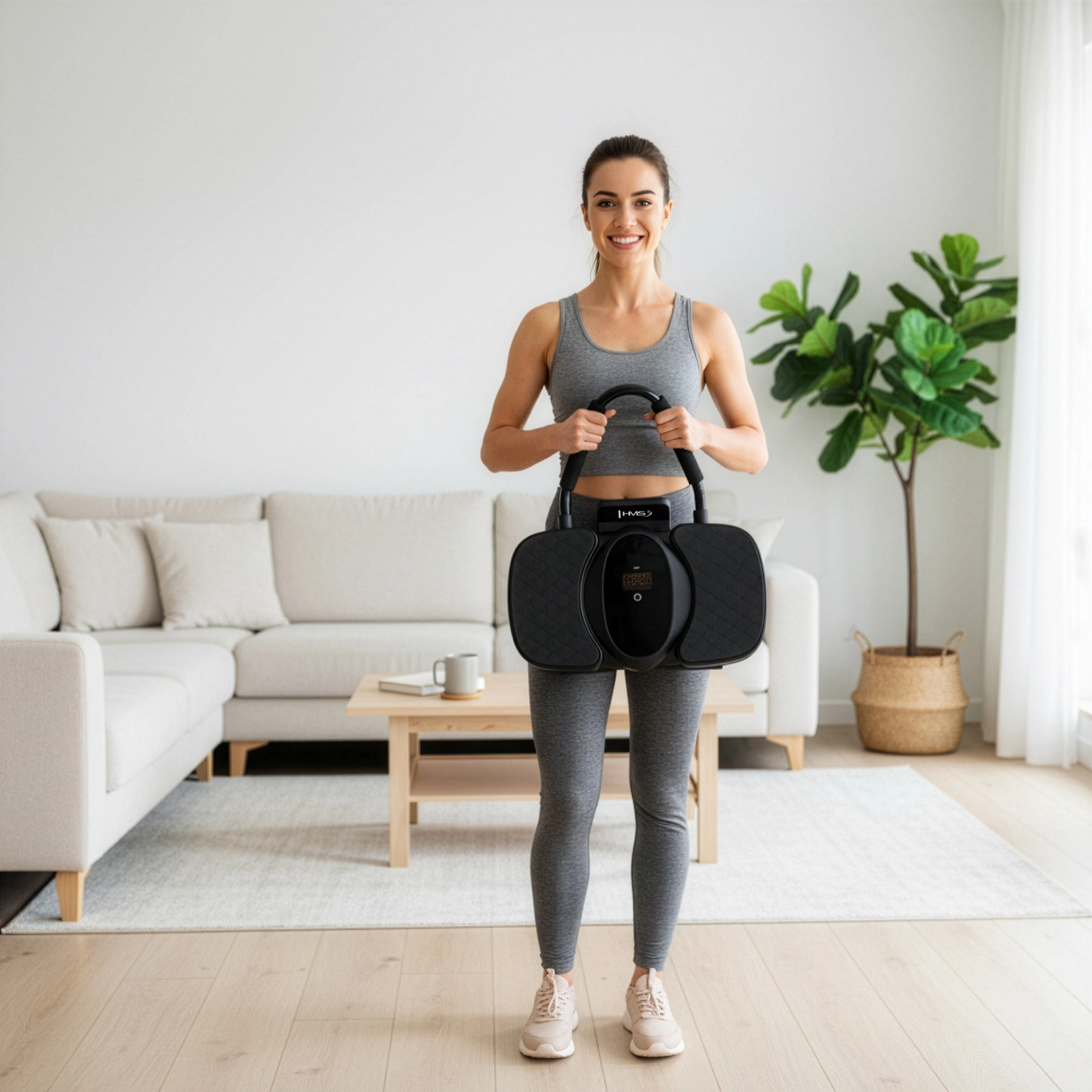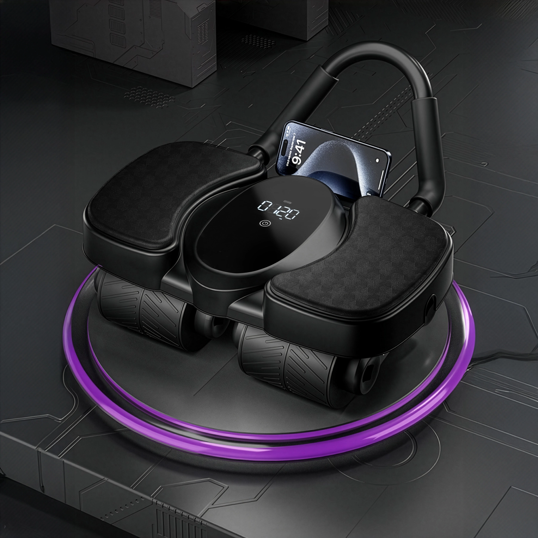 Pre komfortný tréning nechýbajú široké lakťové opierky a mäkká podložka pod kolená. LCD displej prehľadne zobrazuje čas, kalórie a počet opakovaní, zatiaľ čo držiak na telefón umožní sledovať tréningové plány či videá. Vďaka rýchlej zacvakávacej montáži je pripravený na použitie behom chvíľky a USB‑C zaistí jednoduché nabíjanie.